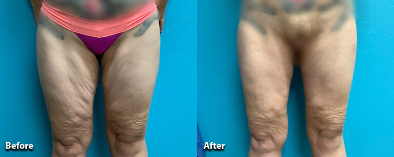 Our patient lost over 150 pounds following weight loss surgery. We performed a medial thigh lift to remove the excess skin and contour her thighs.