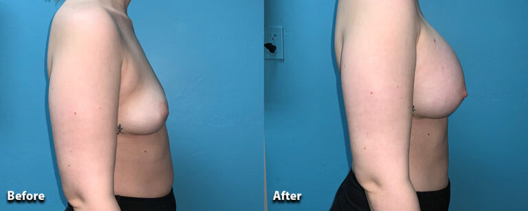 This woman underwent a breast augmentation with 415cc silicone gel implants.