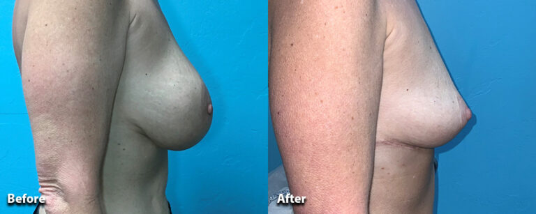 Our patient had undergone a breast augmentation with saline implants and felt that her implants were too big. We performed an implant removal, capsulectomy, and mastopexy.