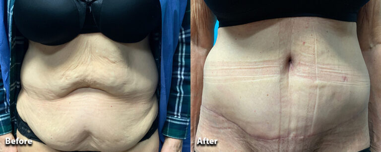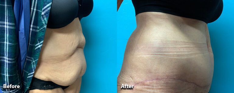 Our patient was bothered by the appearance of her abdomen. She underwent an abdominoplasty with liposuction of her flanks.